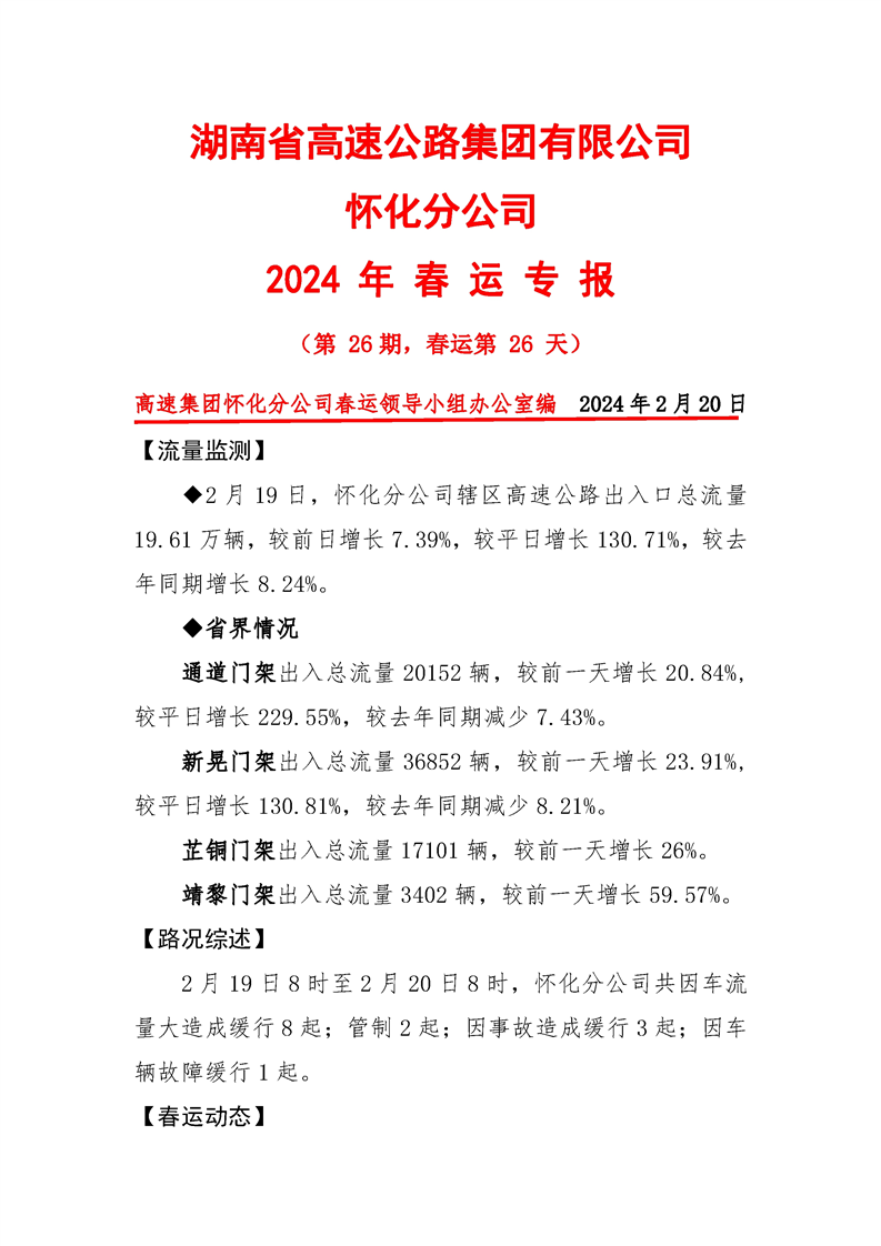 2024年懷化分公司春運(yùn)專報-第26期